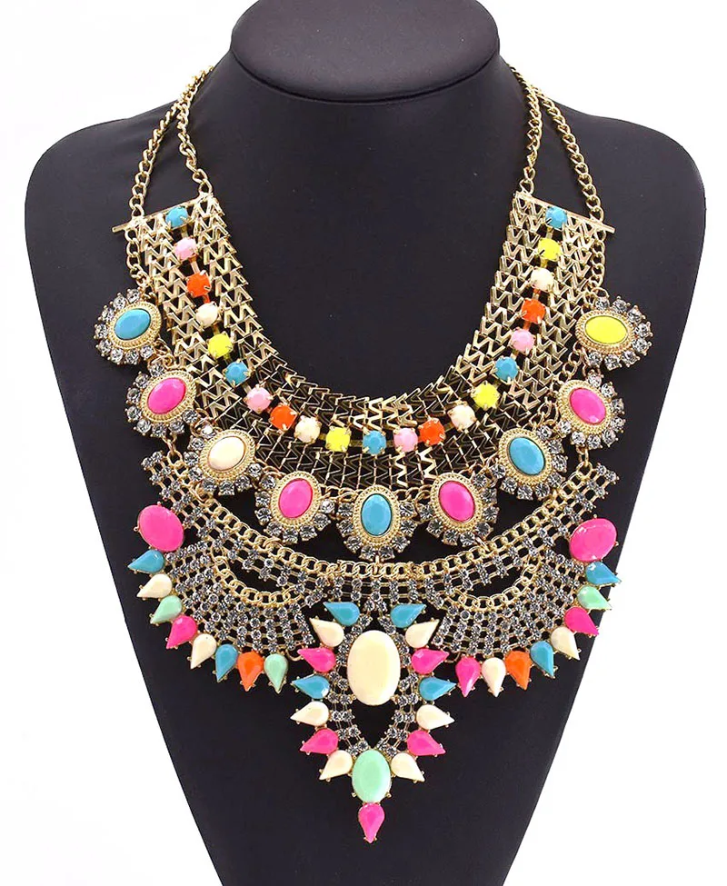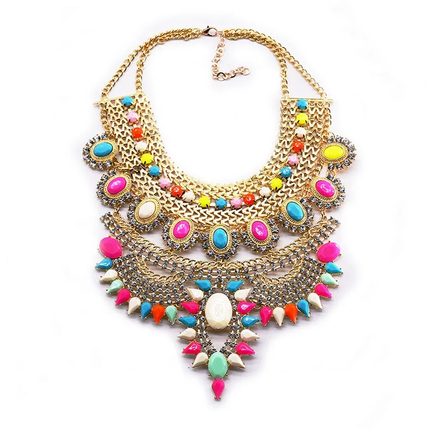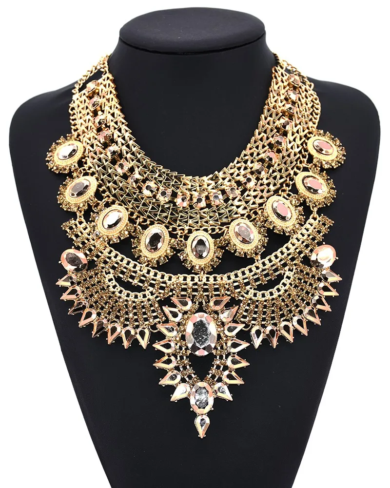Indian Ethnic Statement Crystal Rhinestone Maxi Collar Necklace – Boho Chic