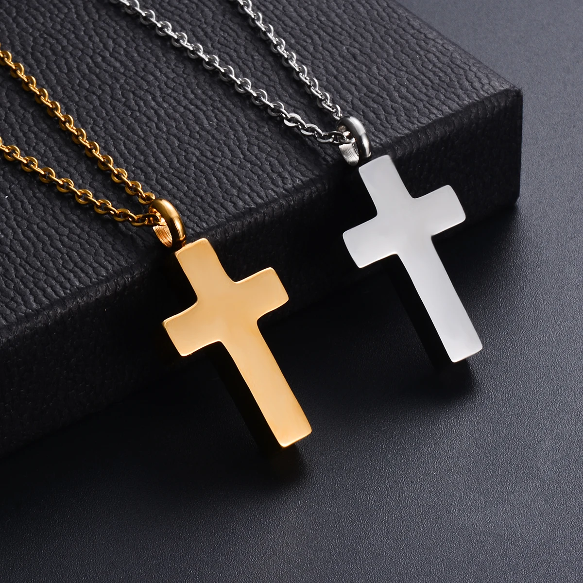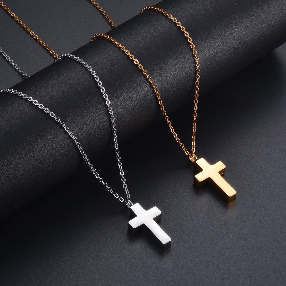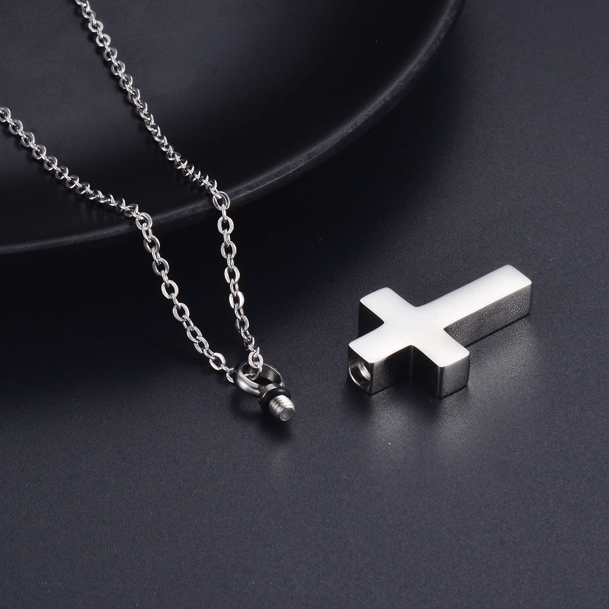 Stainless Steel Classic Cross Cremation Urn Locket Pendant Necklace Memorial Keepsake Jewelry For Women/Men